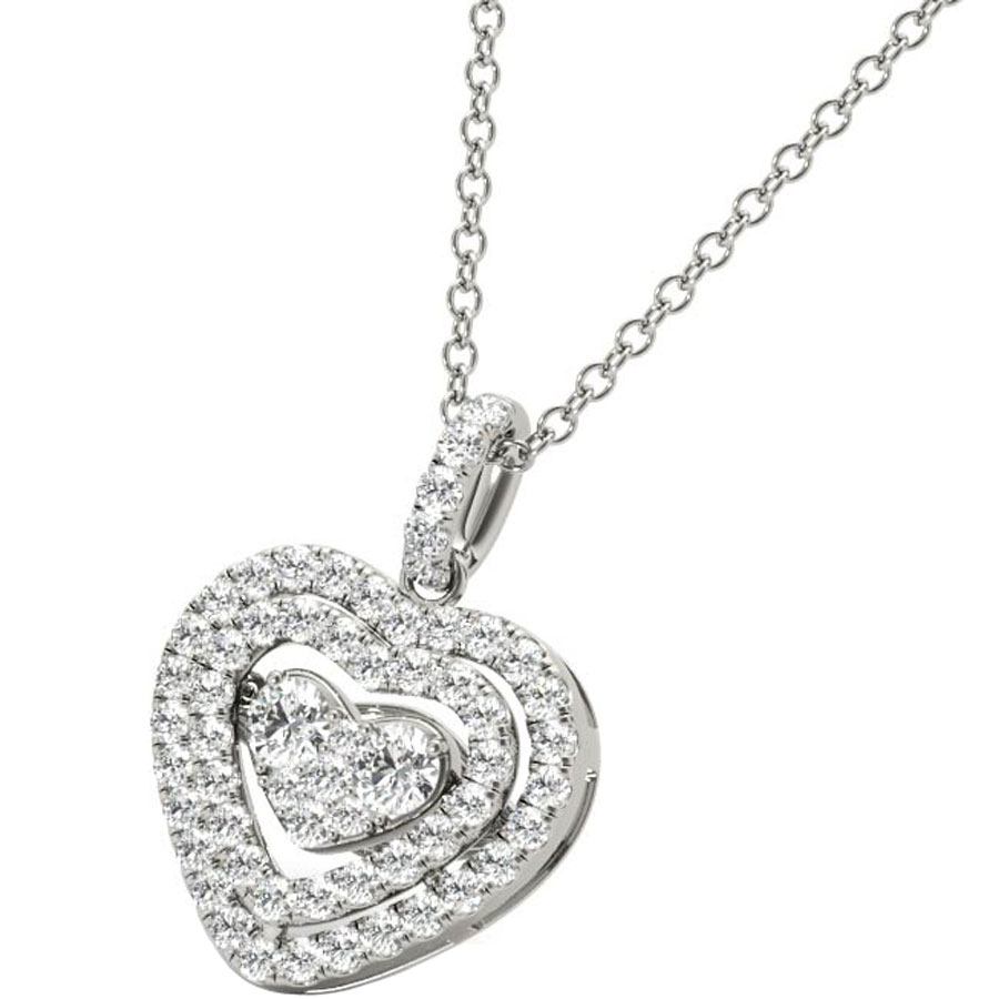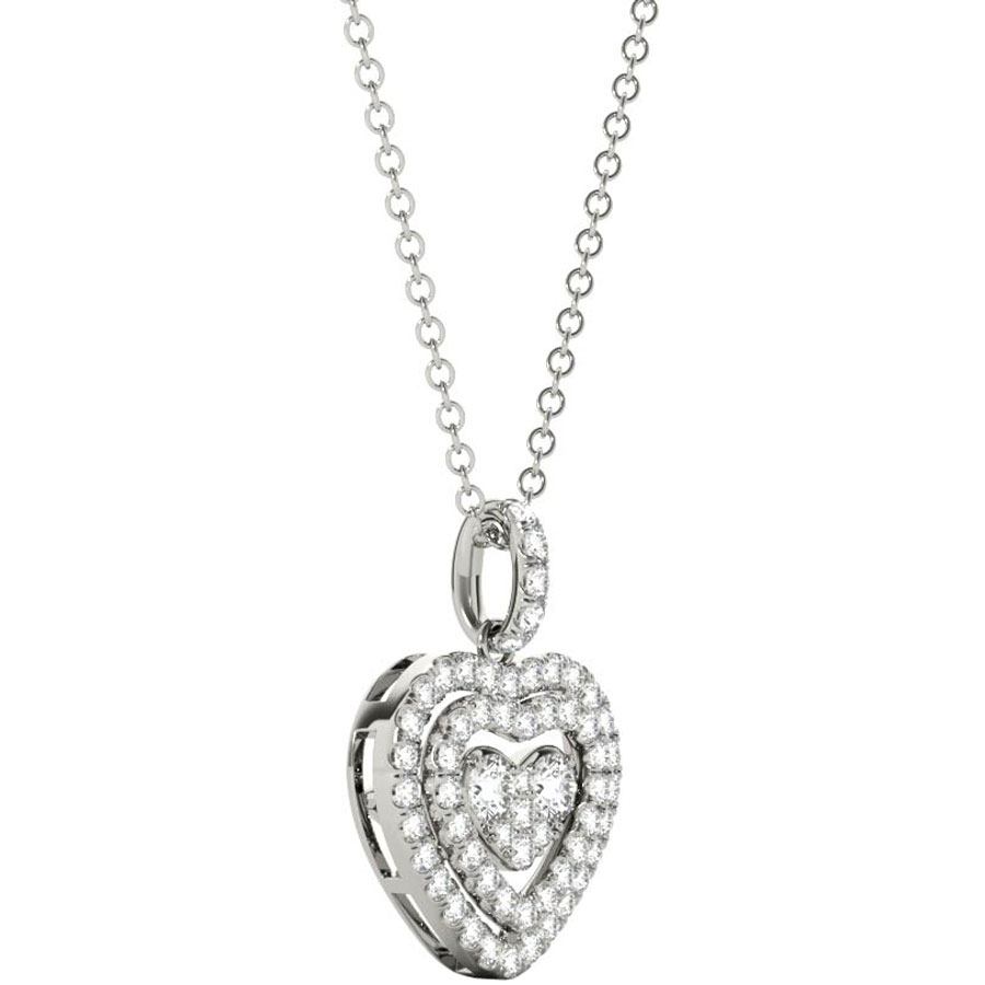 NEW FLUTTERING HEART DIAMOND PENDANT, .64 Carat ON 18K WHITE GOLD WOMEN’S NECKLACE