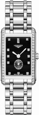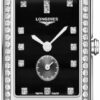 Experience timeless elegance with the Longines DolceVita L5.755.0.57.6. This exquisite timepiece features a sleek black dial adorned with shimmering diamond hour markers, adding a touch of luxury to every moment. The small seconds sub-dial adds a refined detail to the overall design. The 25mm x 42mm stainless steel case, beautifully set with diamonds, further enhances the watch’s sophisticated appeal. Paired with a sturdy stainless steel bracelet and a convenient deployment buckle, this quartz watch ensures both style and comfort. Embrace the allure of the Longines DolceVita collection and elevate your everyday look with this stunning timepiece.